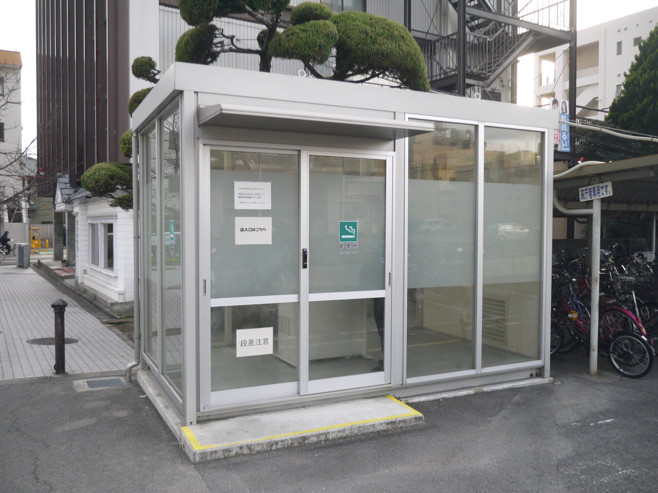 この喫煙室は、たばこの煙を隔離する受動喫煙対策として2016年秋ごろに設置されましたが、2020年4月に制定される大阪府の条例(大阪府の公式ホームページ)は更に踏み込んだ行政機関の庁舎の敷地内全面禁煙を求めているようです。