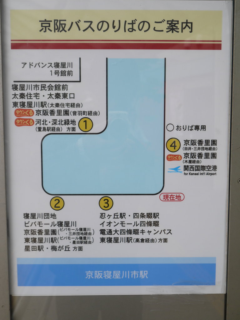 寝屋川市駅のバスロータリーでリムジンバスといえば、関西国際空港行きが4番乗り場(ケンタッキーの前)から発着していることでお馴染みだと思います。