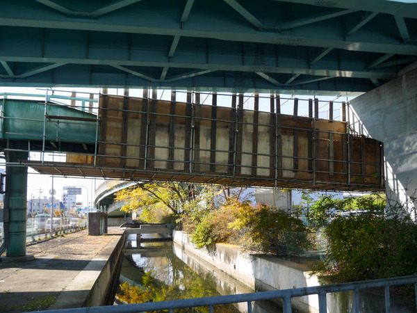 現地の様子を見ると、国道1号線と淀川の間の部分の工事が先行して進んでいるのが分かります。