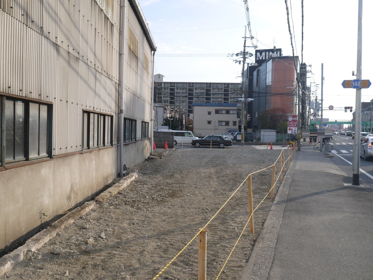 10月の終わりごろから重機を使って屋根などを解体する工事が行われていたもので、地下のガソリンタンクも撤去されたのか、土の地面が広がっています。