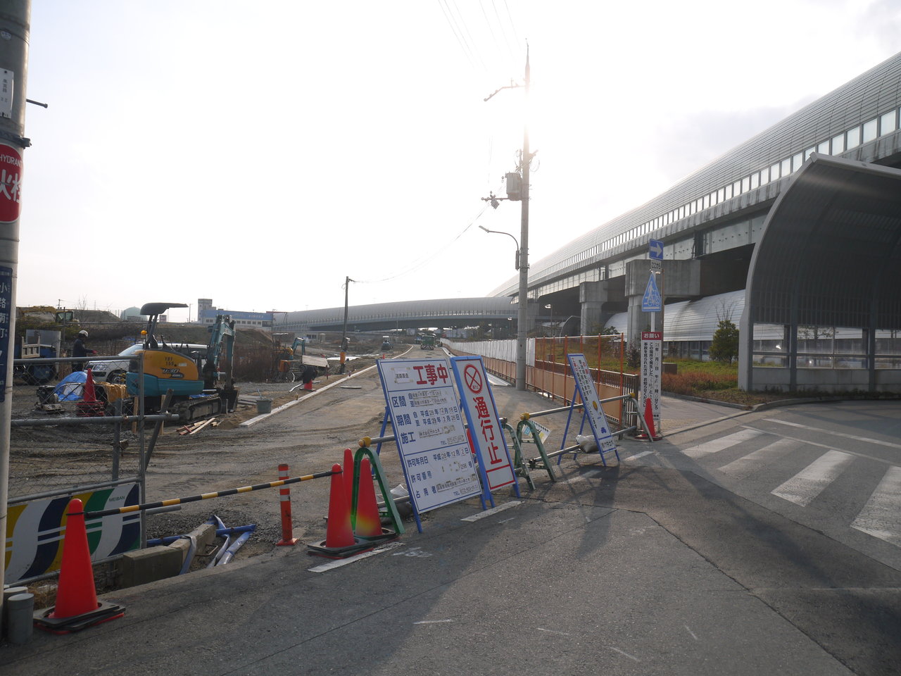 寝屋川市の土地区画整理事業(2014年12月に認可)が進められている小路地区(寝屋川市南部)で、建設中の道路の歩道や区画などが分かるようになってきました。