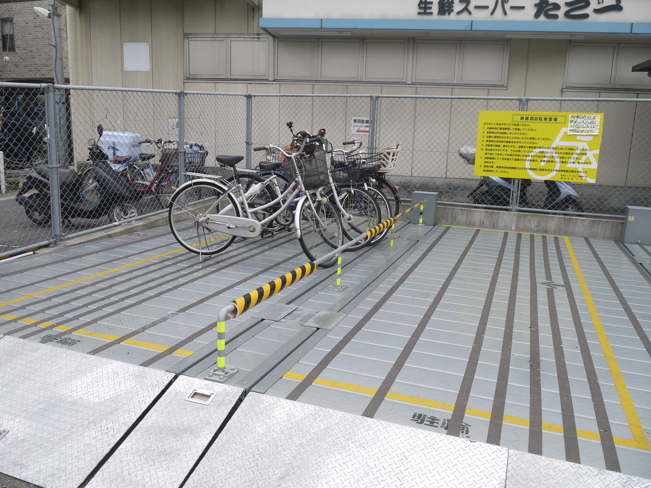 清水町の「生鮮スーパー たこ一寝屋川店」の機械式駐車場が、廃止されて駐輪場になっています。