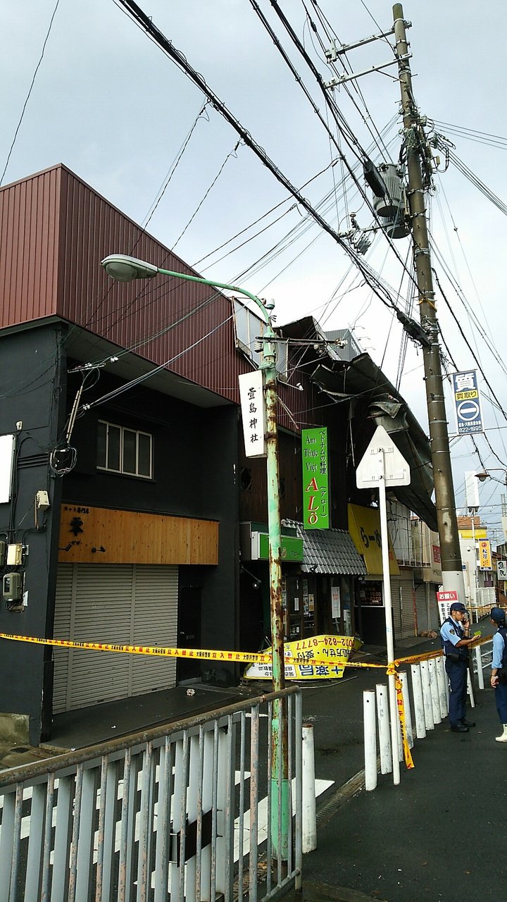 萱島駅前の店舗の屋根が台風12号の影響ではがれる被害が出ているようです。