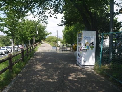 自販機が置かれた場所は、緑地北側の堤防の入口付近です。